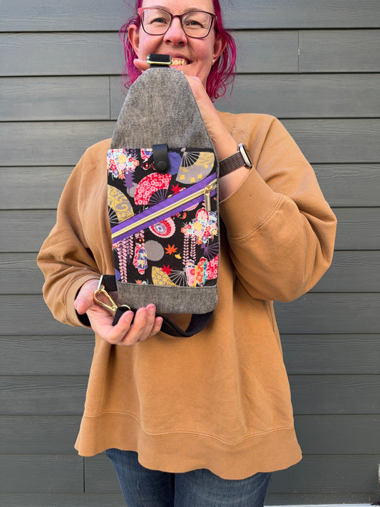 Mini Traveller Sling | Upcycled Denim and Hand-Selected Japanese Fabric | Made in Canada
