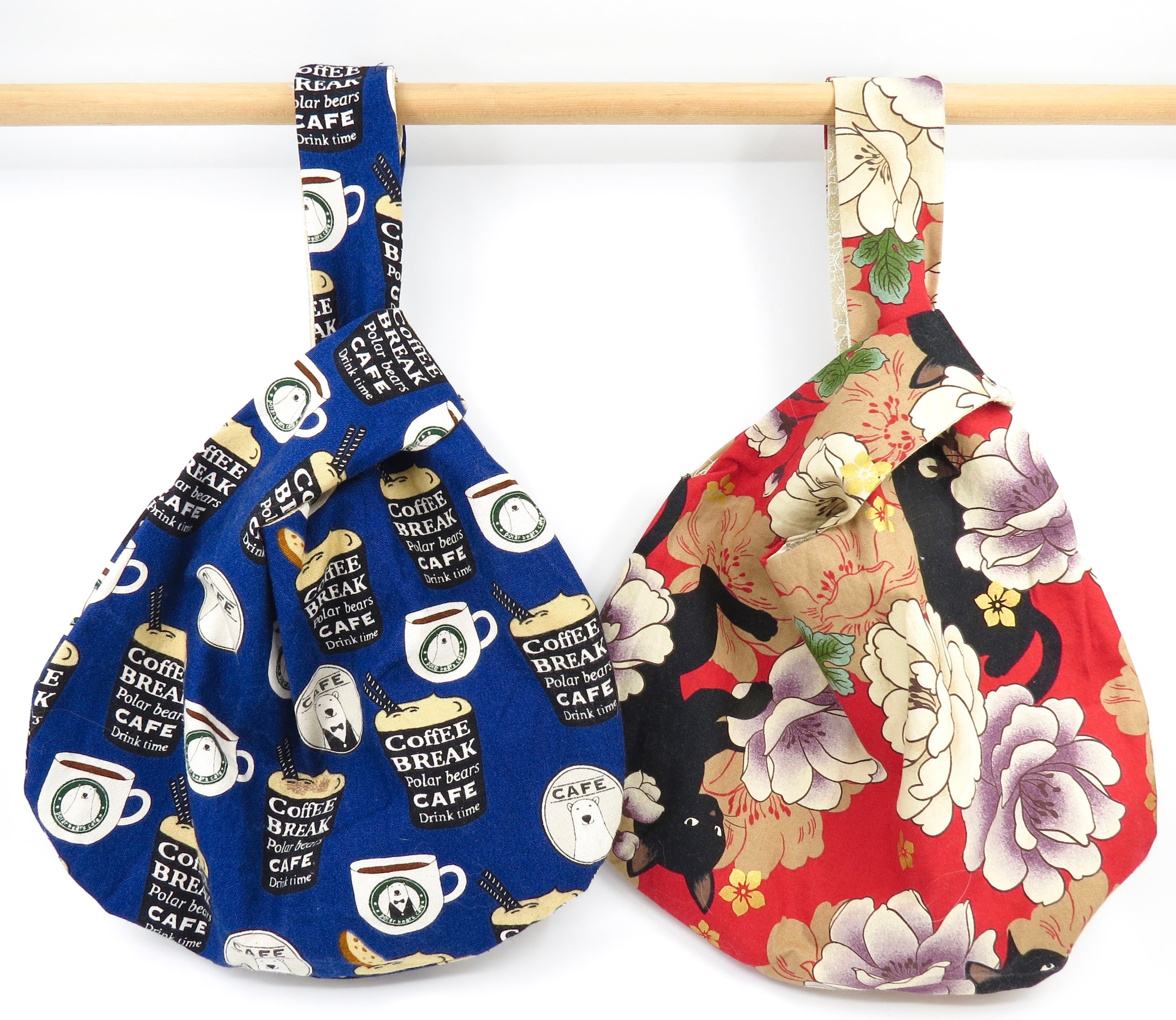 Atelier Nekozuki uses hand-selected Japanese fabrics from Kyoto and Tokyo, Japan. Katie purchases fabric from these two cities and then returns to her studio in the foothills of the Canadian Rockies and crafts the bags with care and quality control inspectors' (the cats') approval).