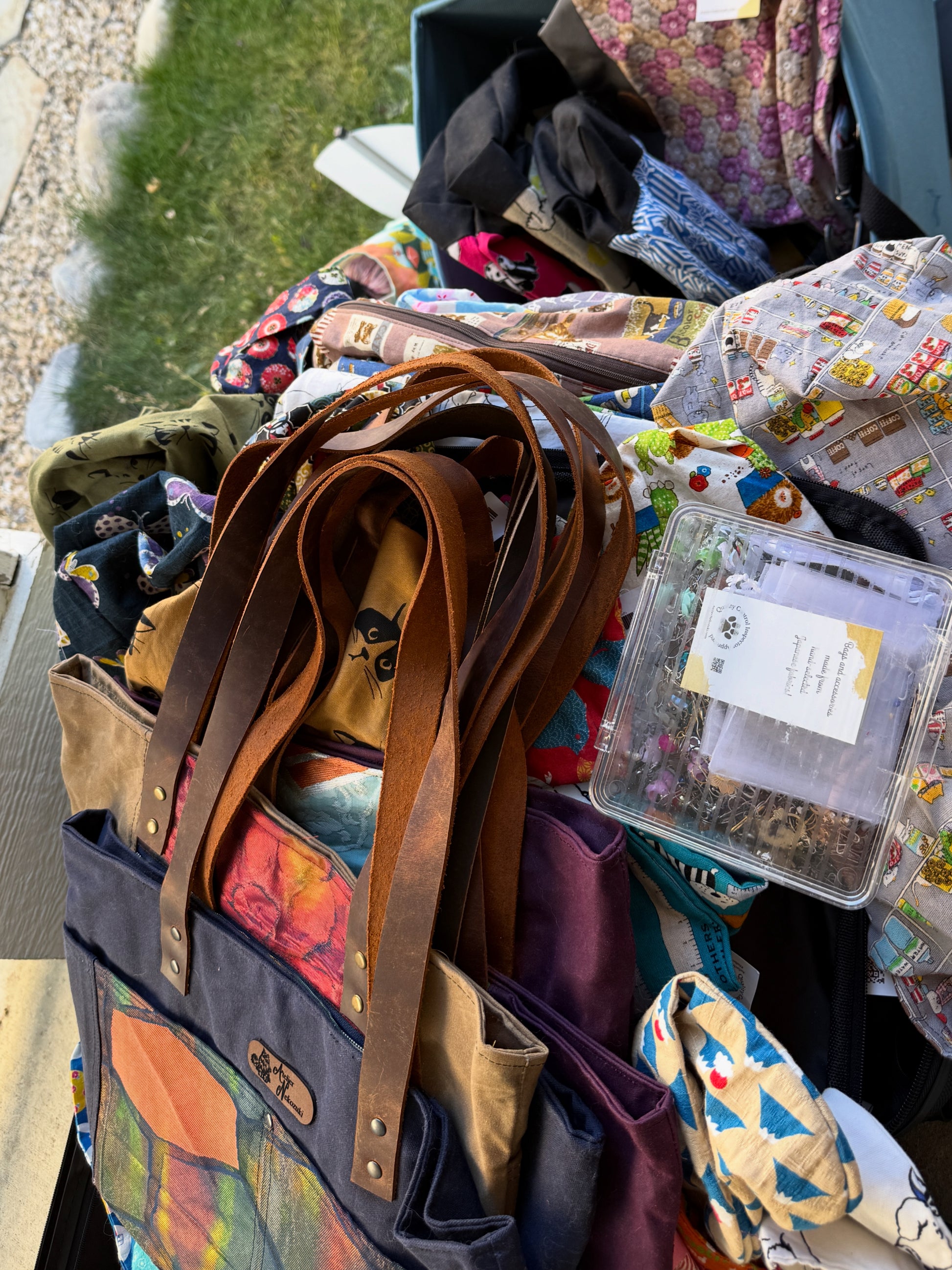 Now, why Japanese fabrics? Well, remember that little note about my Japanese exchange? Here’s where that ties in! When I began making project bags, I was one of only a few project bag makers inAlberta. But then more people joined me and I started looking for a way to make my bags unique, since there are only so many ways to fold fabric and still have it work as a bag! I was already using Nekozuki in my name (Nekozuki is cat lover in Japanese), and so I looked to Japan for cute cat fabrics (which were hard to find in Canada). I found Etsy sellers, and imported from then to start. But then my husband and I went to Japan for his first trip in 2016. I said “We should look at the cost of buying fabric in Japan and bringing it back with us.” - since purchasing it with the middle man up charge was not going to be sustainable and I don’t use it in such a quantity to justify wholesale bolts. Lo and behold, it was cheaper for me to go to Japan, buy the fabric, and then return to Canada with it! It also meant I could return to Japan (the horrors!). So now I exclusively use Japanese fabrics for my exterior fabrics (with the exception of any bags with canvas, like the Kato Drawstring bag). The feel for a lot of the fabric is often nicer than North American fabrics - both in weight, texture, and hand feel. I know purchasing fabrics online is hard! It’s another reason I go to Japan for the fabrics. But, please rest assured that if you purchase a bag from me, you are receiving fabrics that are hand-selected as they are for a reason!