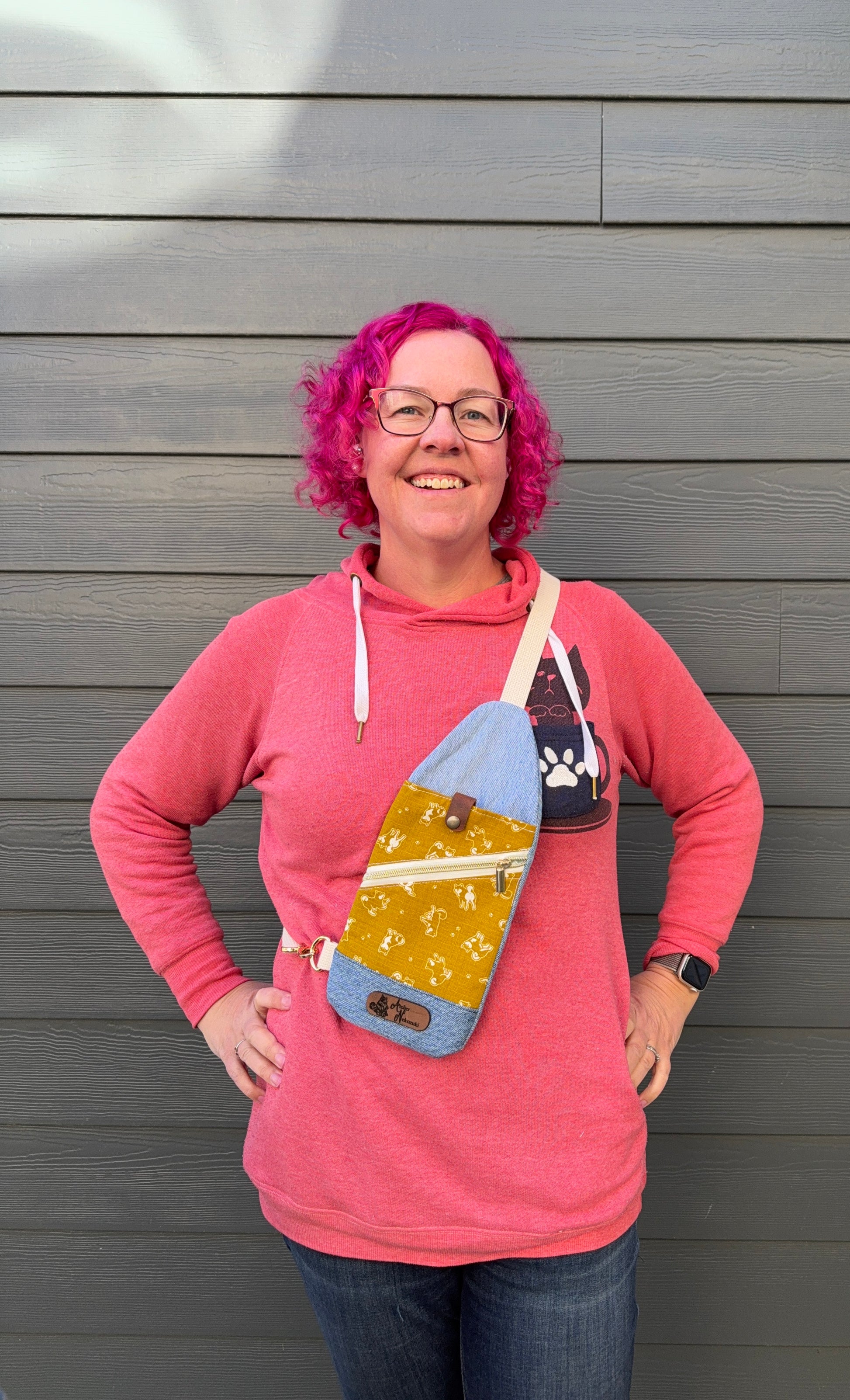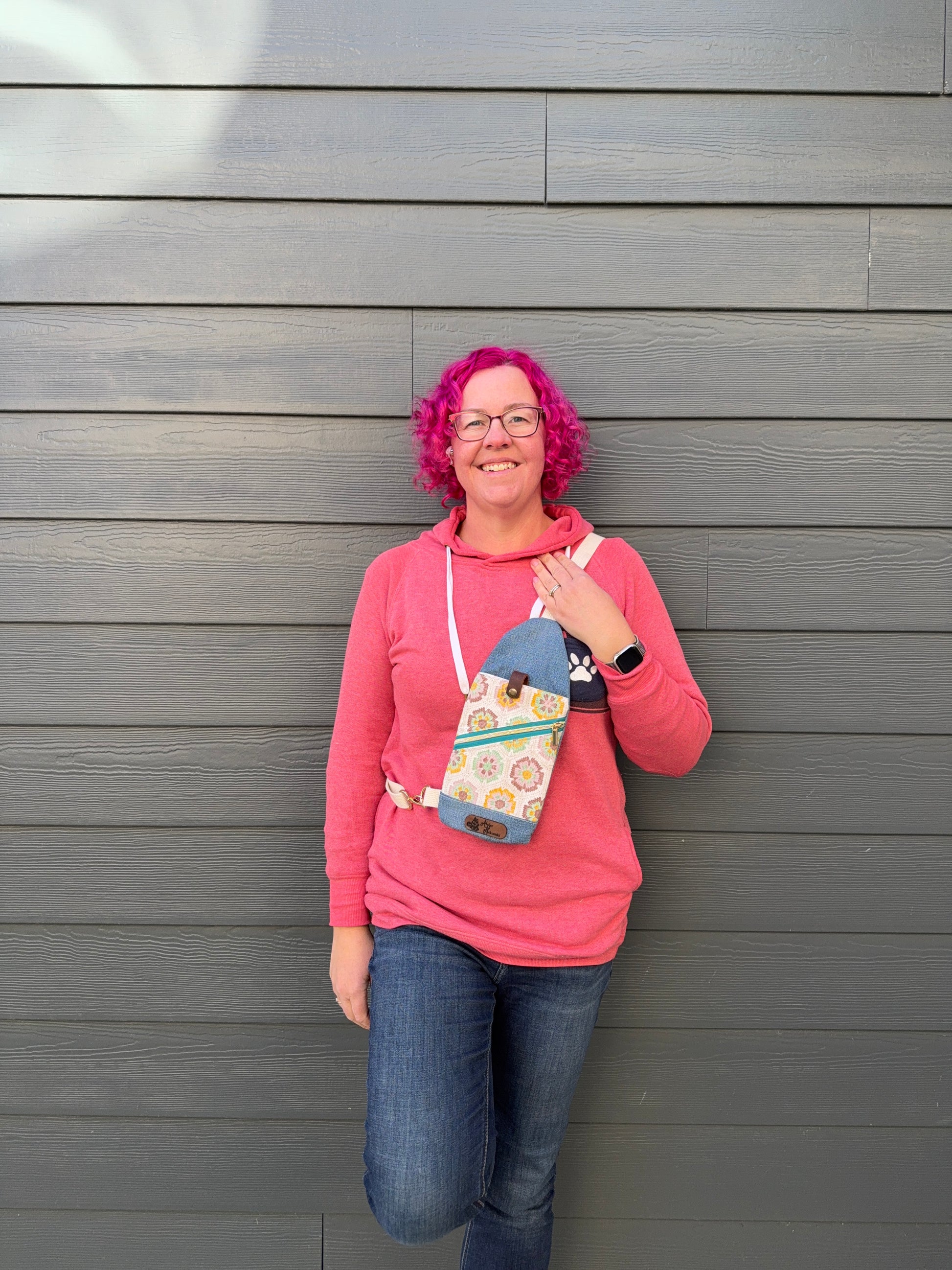 Ready to travel? This sling is ready to head out with you! A combo of upcycled denim and new Japanese fabric, these Mini Traveler Slings are FUN-ctional.