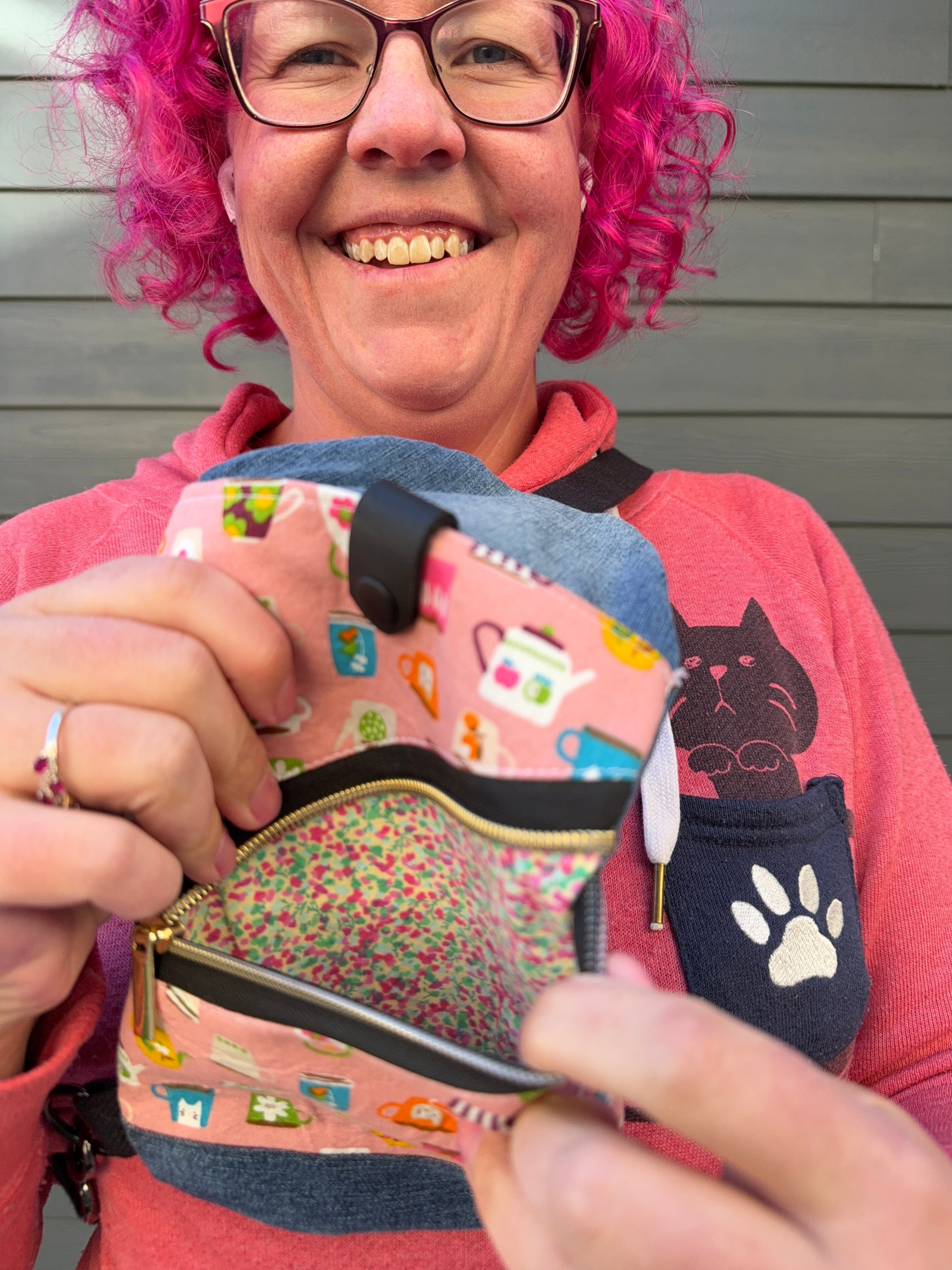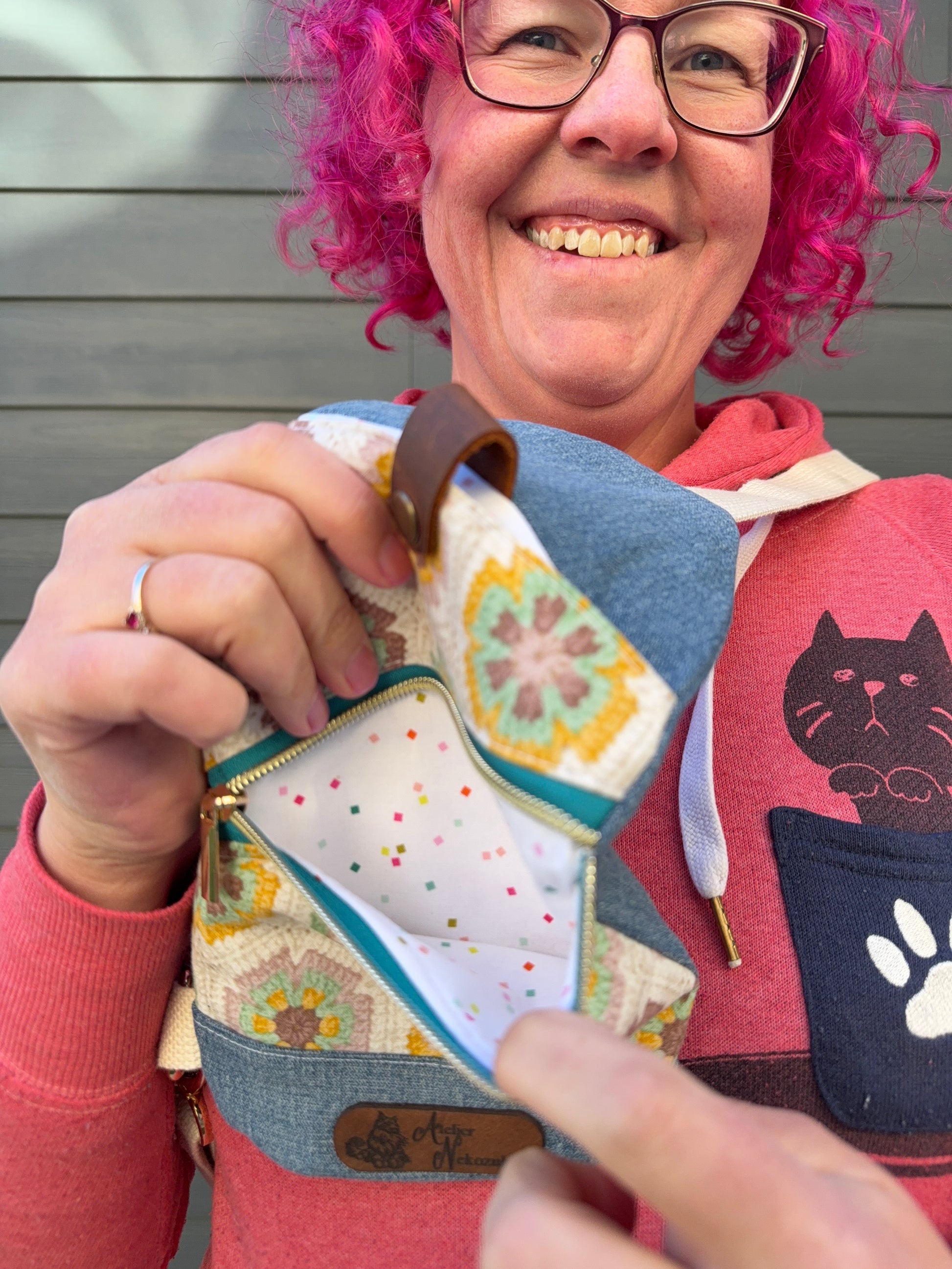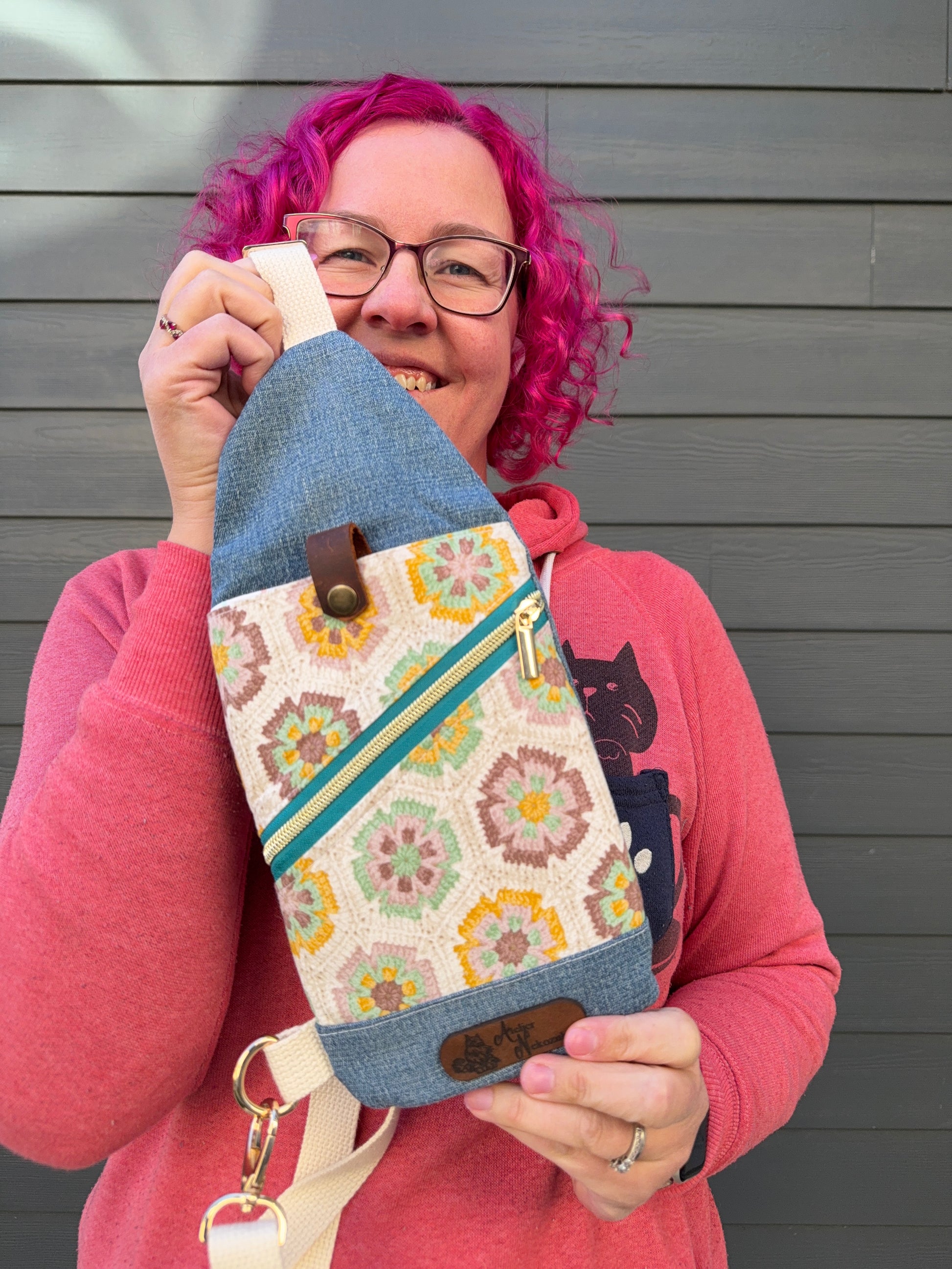 I pride myself on making all my bag styles transportable, so you can carry your knitting everywhere with you! Whether it’s a strap wrist, shoulder straps, or carabiner hook, I’ve got you covered!