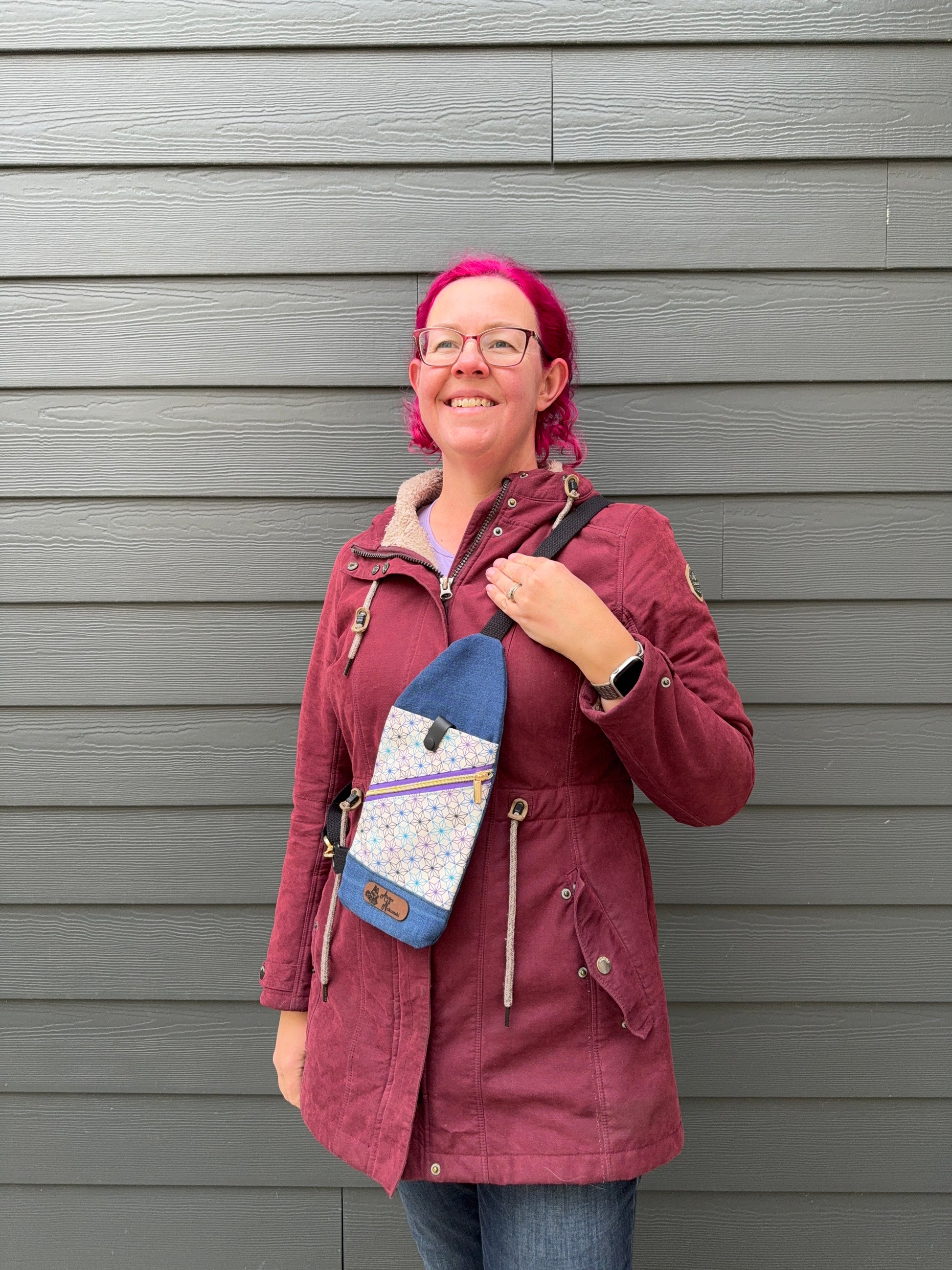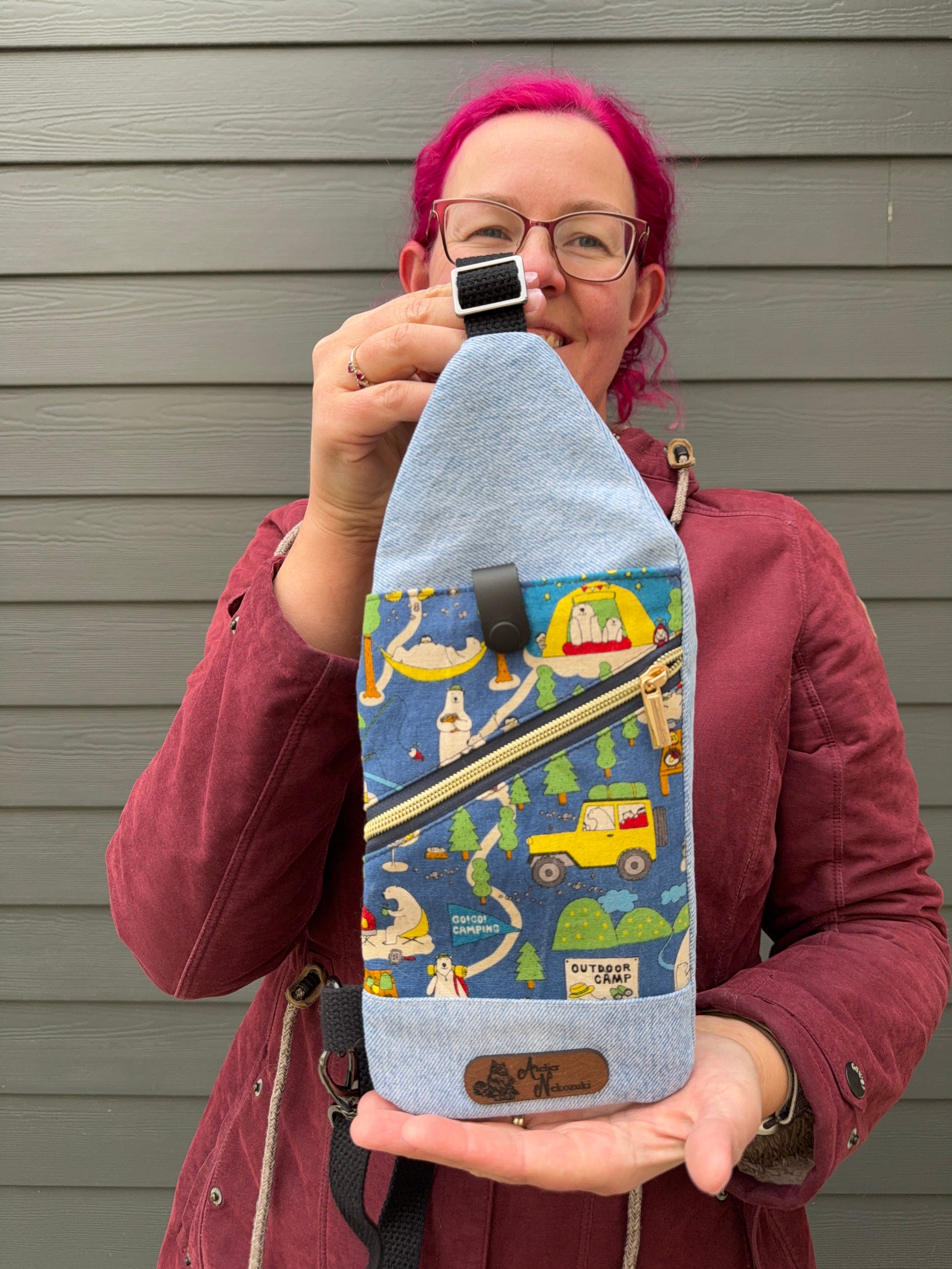 Mini Traveller Sling | Upcycled Denim and Hand-Selected Japanese Fabric | Made in Canada