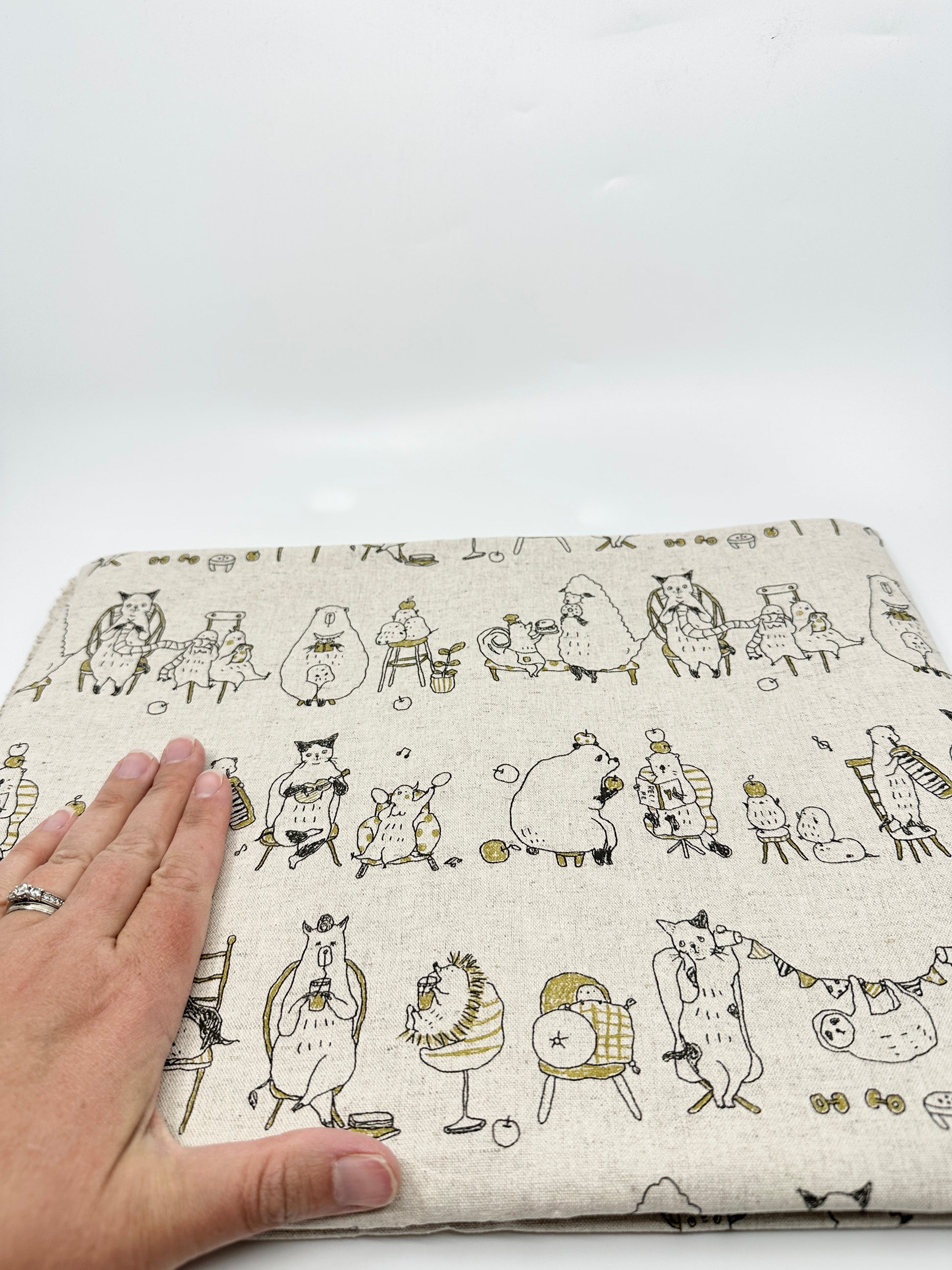 Now, why Japanese fabrics? Well, remember that little note about my Japanese exchange? Here’s where that ties in! When I began making project bags, I was one of only a few project bag makers inAlberta. But then more people joined me and I started looking for a way to make my bags unique, since there are only so many ways to fold fabric and still have it work as a bag! I was already using Nekozuki in my name (Nekozuki is cat lover in Japanese), and so I looked to Japan for cute cat fabrics (which were hard to find in Canada). I found Etsy sellers, and imported from then to start. But then my husband and I went to Japan for his first trip in 2016. I said “We should look at the cost of buying fabric in Japan and bringing it back with us.” - since purchasing it with the middle man up charge was not going to be sustainable and I don’t use it in such a quantity to justify wholesale bolts. Lo and behold, it was cheaper for me to go to Japan, buy the fabric, and then return to Canada with it! It also meant I could return to Japan (the horrors!). So now I exclusively use Japanese fabrics for my exterior fabrics (with the exception of any bags with canvas, like the Kato Drawstring bag). The feel for a lot of the fabric is often nicer than North American fabrics - both in weight, texture, and hand feel. I know purchasing fabrics online is hard! It’s another reason I go to Japan for the fabrics. But, please rest assured that if you purchase a bag from me, you are receiving fabrics that are hand-selected as they are for a reason!