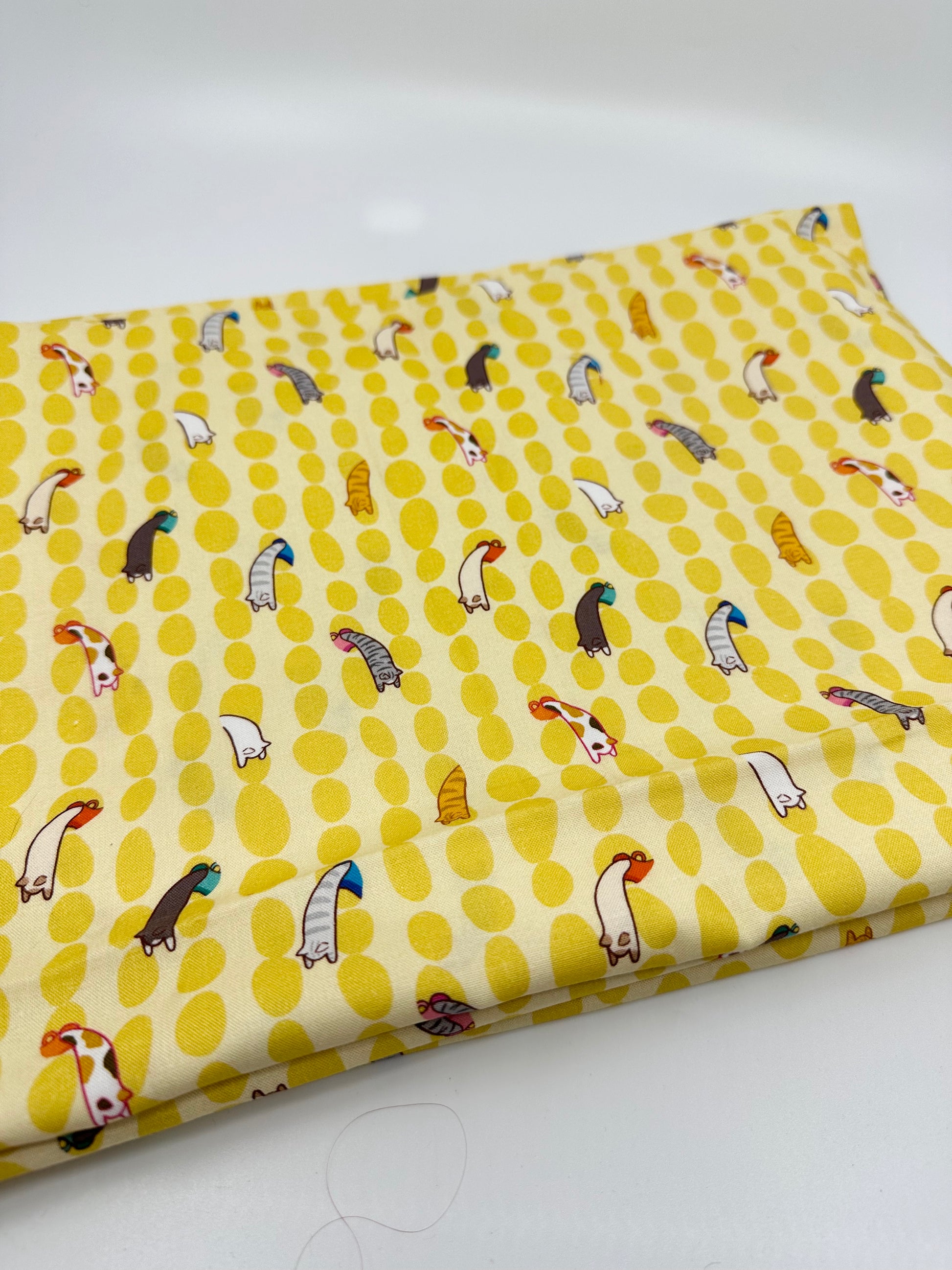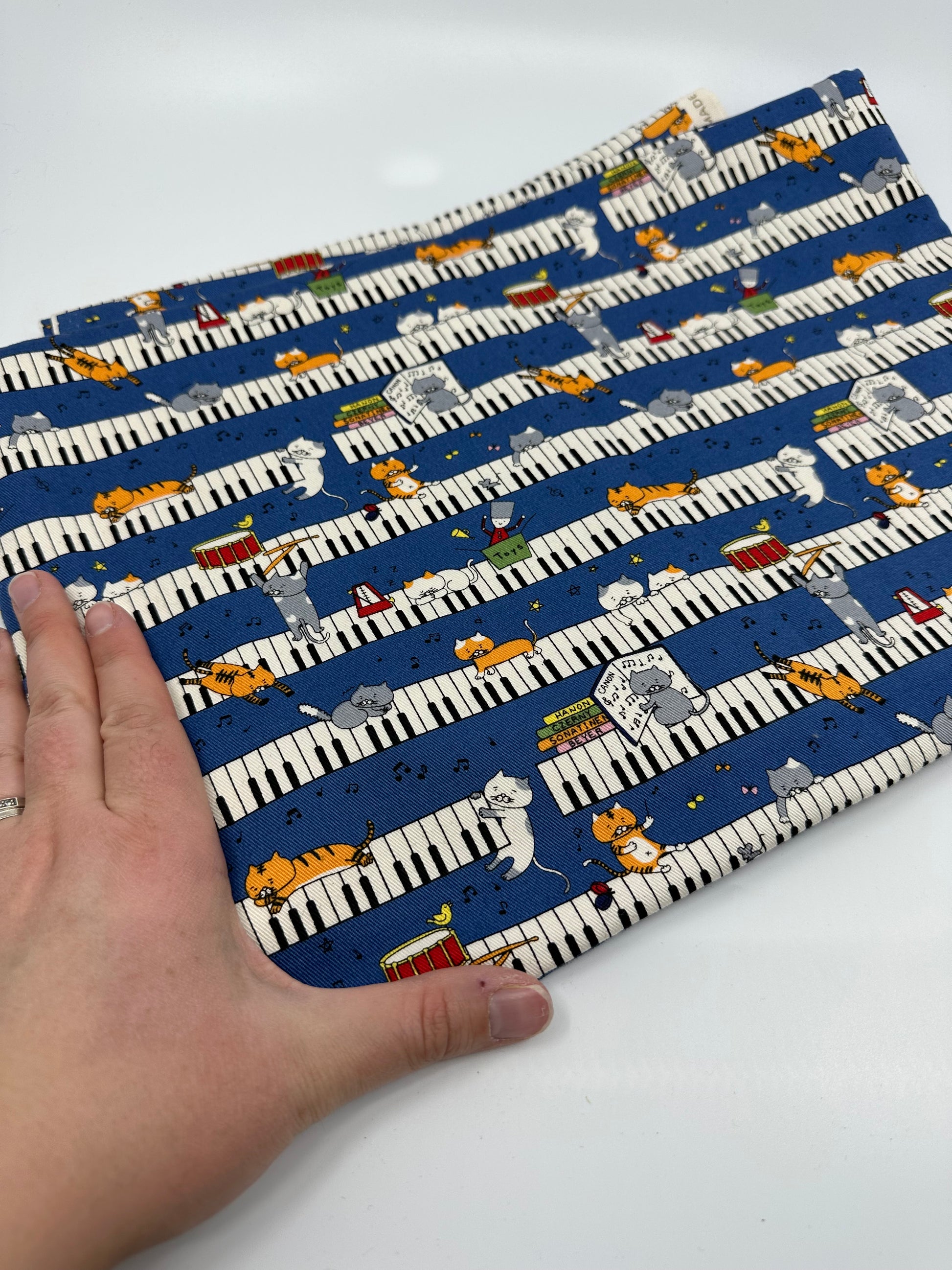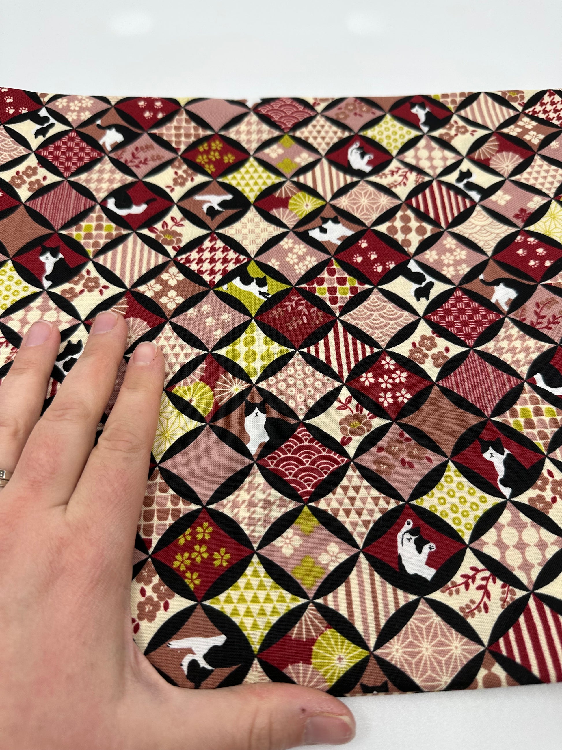 Now, why Japanese fabrics? Well, remember that little note about my Japanese exchange? Here’s where that ties in! When I began making project bags, I was one of only a few project bag makers inAlberta. But then more people joined me and I started looking for a way to make my bags unique, since there are only so many ways to fold fabric and still have it work as a bag! I was already using Nekozuki in my name (Nekozuki is cat lover in Japanese), and so I looked to Japan for cute cat fabrics (which were hard to find in Canada). I found Etsy sellers, and imported from then to start. But then my husband and I went to Japan for his first trip in 2016. I said “We should look at the cost of buying fabric in Japan and bringing it back with us.” - since purchasing it with the middle man up charge was not going to be sustainable and I don’t use it in such a quantity to justify wholesale bolts. Lo and behold, it was cheaper for me to go to Japan, buy the fabric, and then return to Canada with it! It also meant I could return to Japan (the horrors!). So now I exclusively use Japanese fabrics for my exterior fabrics (with the exception of any bags with canvas, like the Kato Drawstring bag). The feel for a lot of the fabric is often nicer than North American fabrics - both in weight, texture, and hand feel. I know purchasing fabrics online is hard! It’s another reason I go to Japan for the fabrics. But, please rest assured that if you purchase a bag from me, you are receiving fabrics that are hand-selected as they are for a reason!
